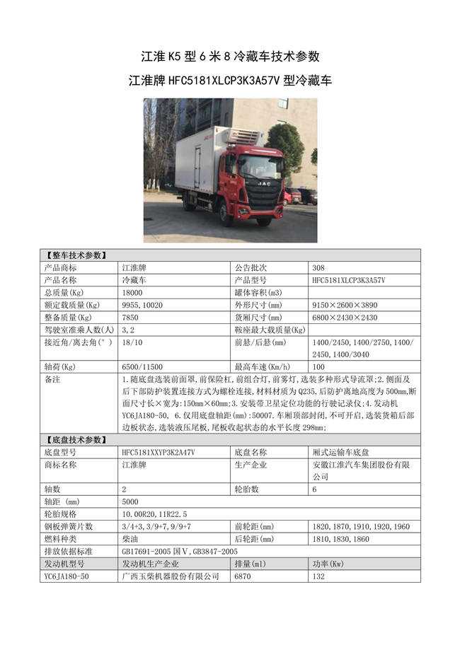 江淮K5型6米8冷藏車