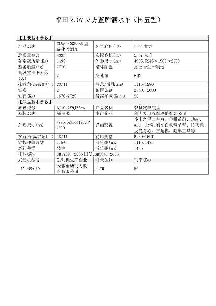 福田2立方藍牌灑水車