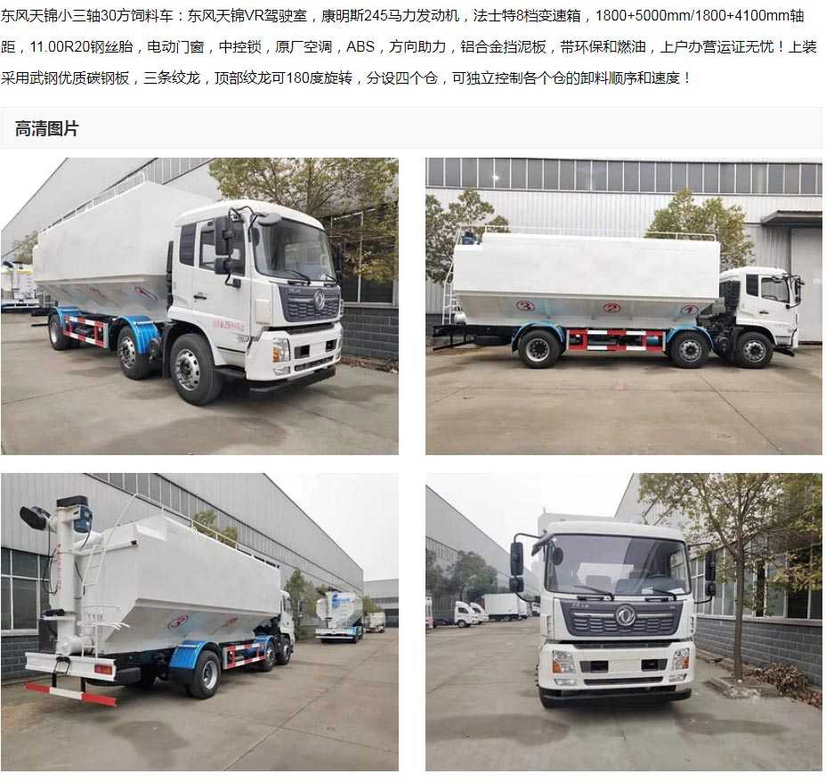 國六東風天錦小三軸散裝飼料運輸車